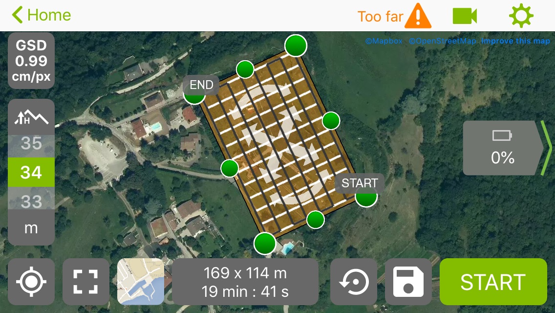 La planification du vol est très simple grâce à l'interface intuitive dePix4D Capture. Le plan de vol est prêt en quelques minutes et tout les réglages indispensables sont présents.
